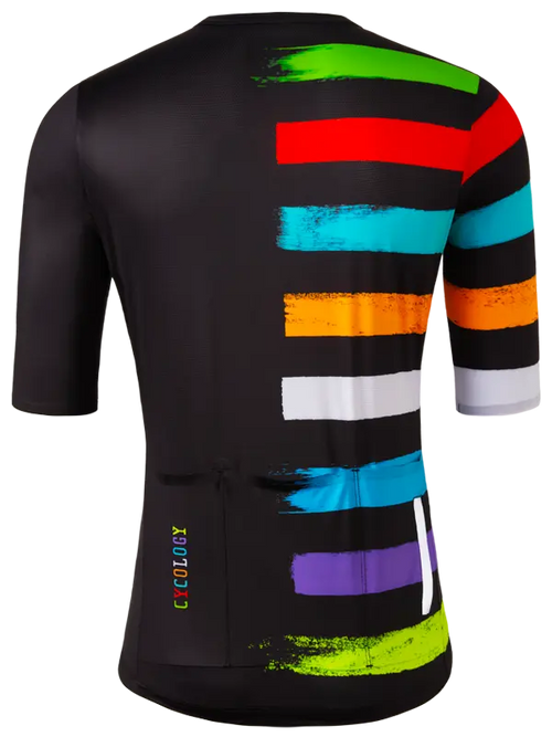 The Reborn jersey, designed with sustainability in mind, provides all-day comfort and style by combining recycled fabrics with distinctive Cycology designs.